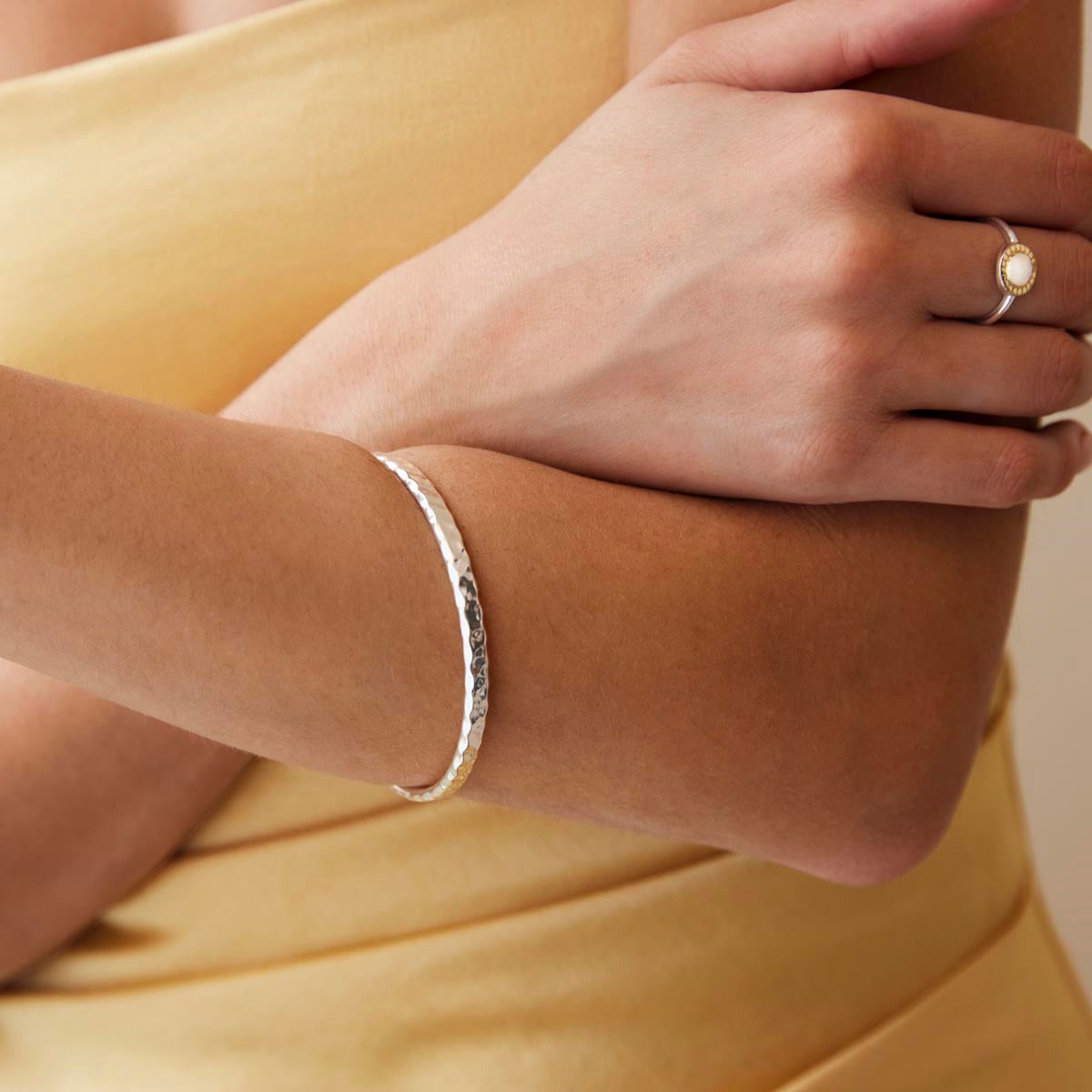 Sterling silver 2.5x5mm oval profile, hollow tube, silver beaten finish bangle 64mm id
