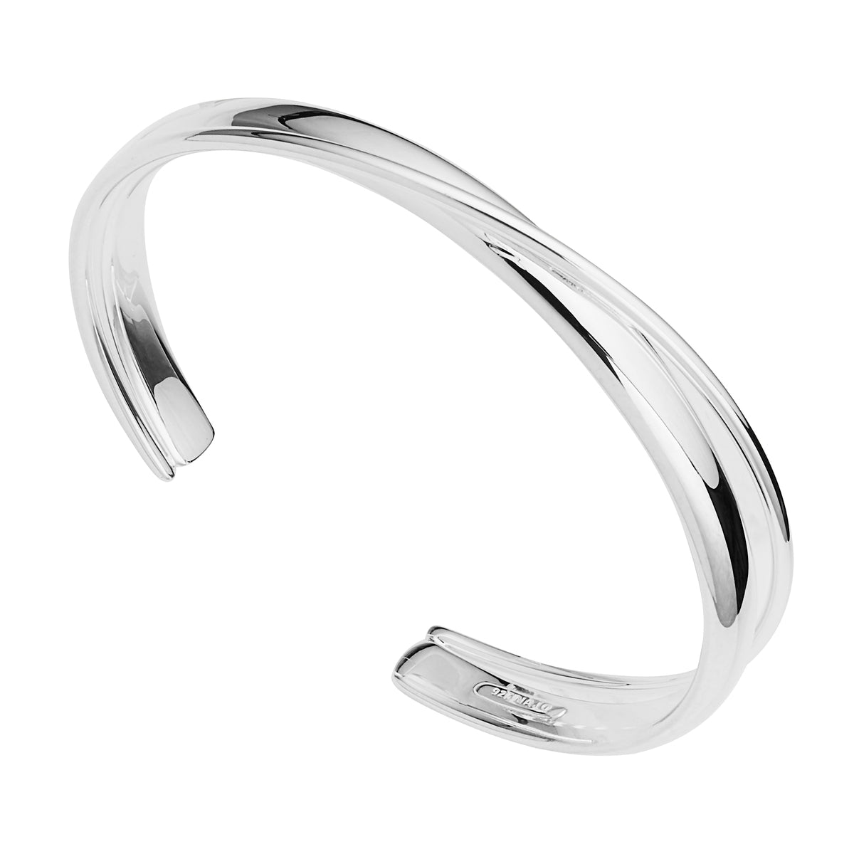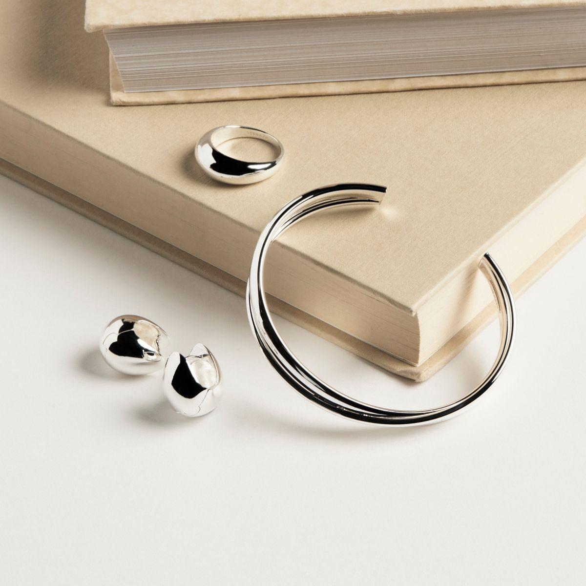 Sterling silver, 11mm wide silver cuff made from 2 different width, overlapping hollow tubes (does not flex), 60mm inner diam